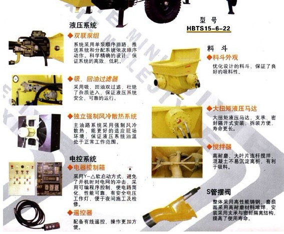 電機 主油泵(現(xiàn)在一般用韓國川崎的進(jìn)口主油泵) 電磁閥(國內(nèi)用華德的多) 料缸 主油缸(國內(nèi)品牌好的是協(xié)力油缸) 潤滑泵 (6路潤滑泵)風(fēng)冷(冷卻液壓油的,也有廠家用水冷,水冷工地需要接水,就是這個麻煩一些)電控柜 (PLC歐姆龍的比較好點)
